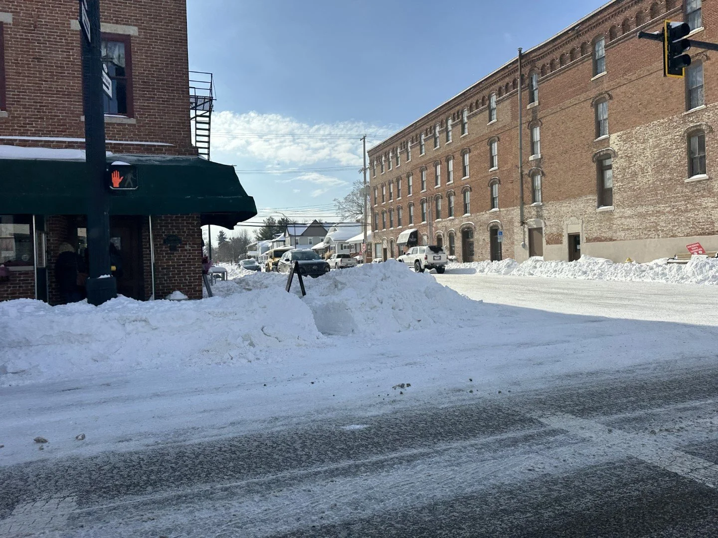Plows and road crews spent much of Sunday and Monday digging out main routes and neighborhoods, and the depth of snow made side streets, parking lots, and sidewalks difficult to clear quickly.